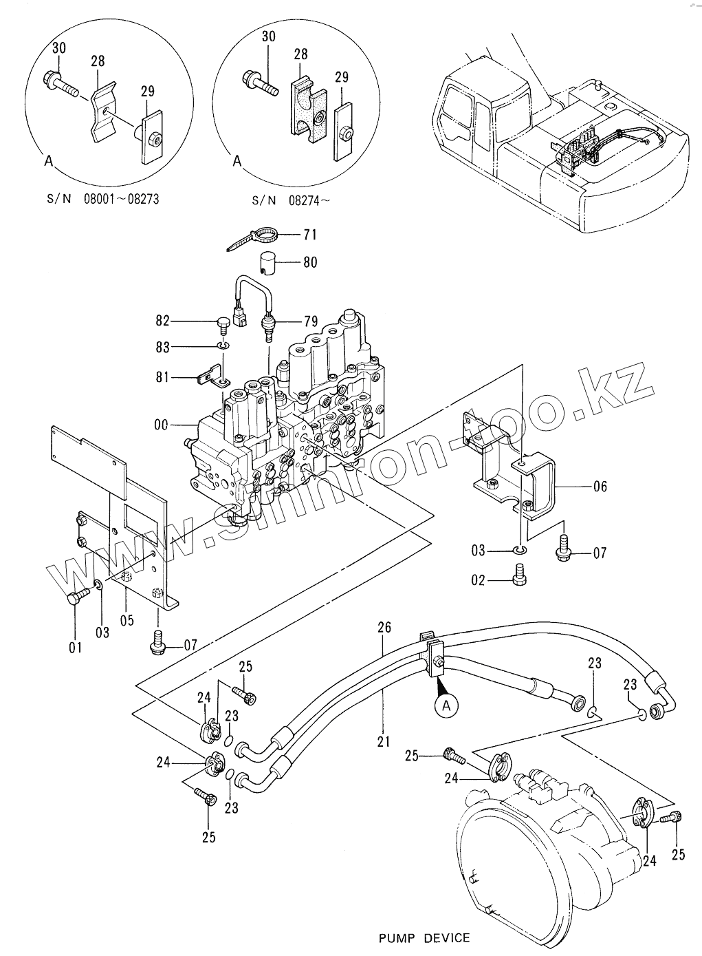 Каталог запасных частей к технике: Hitachi EX-220-2. OIL COOLER PIPINGS (1)