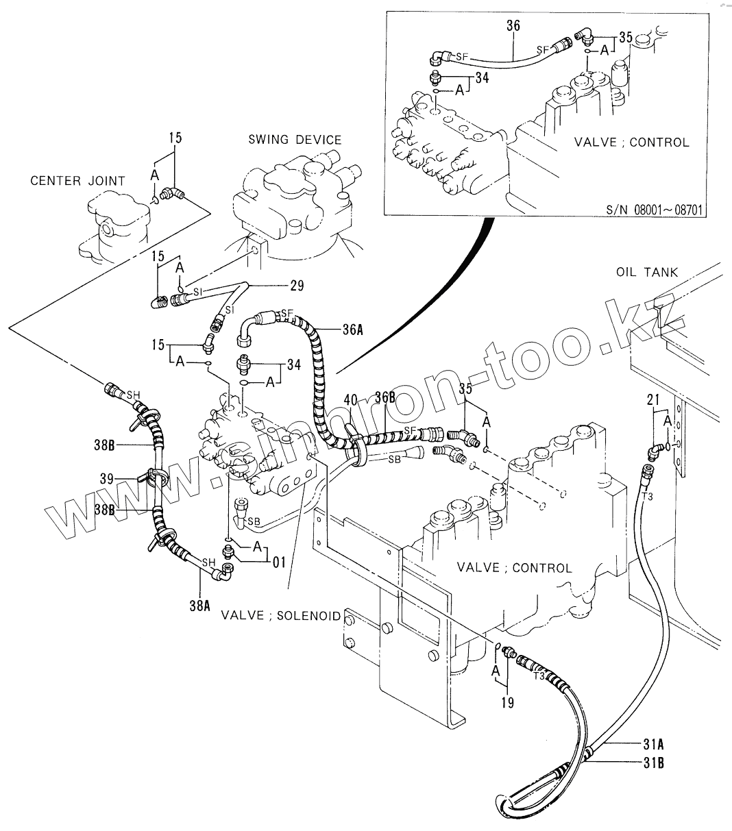 Каталог запасных частей к технике: Hitachi EX-220-2. PILOT PIPINGS (2-2)