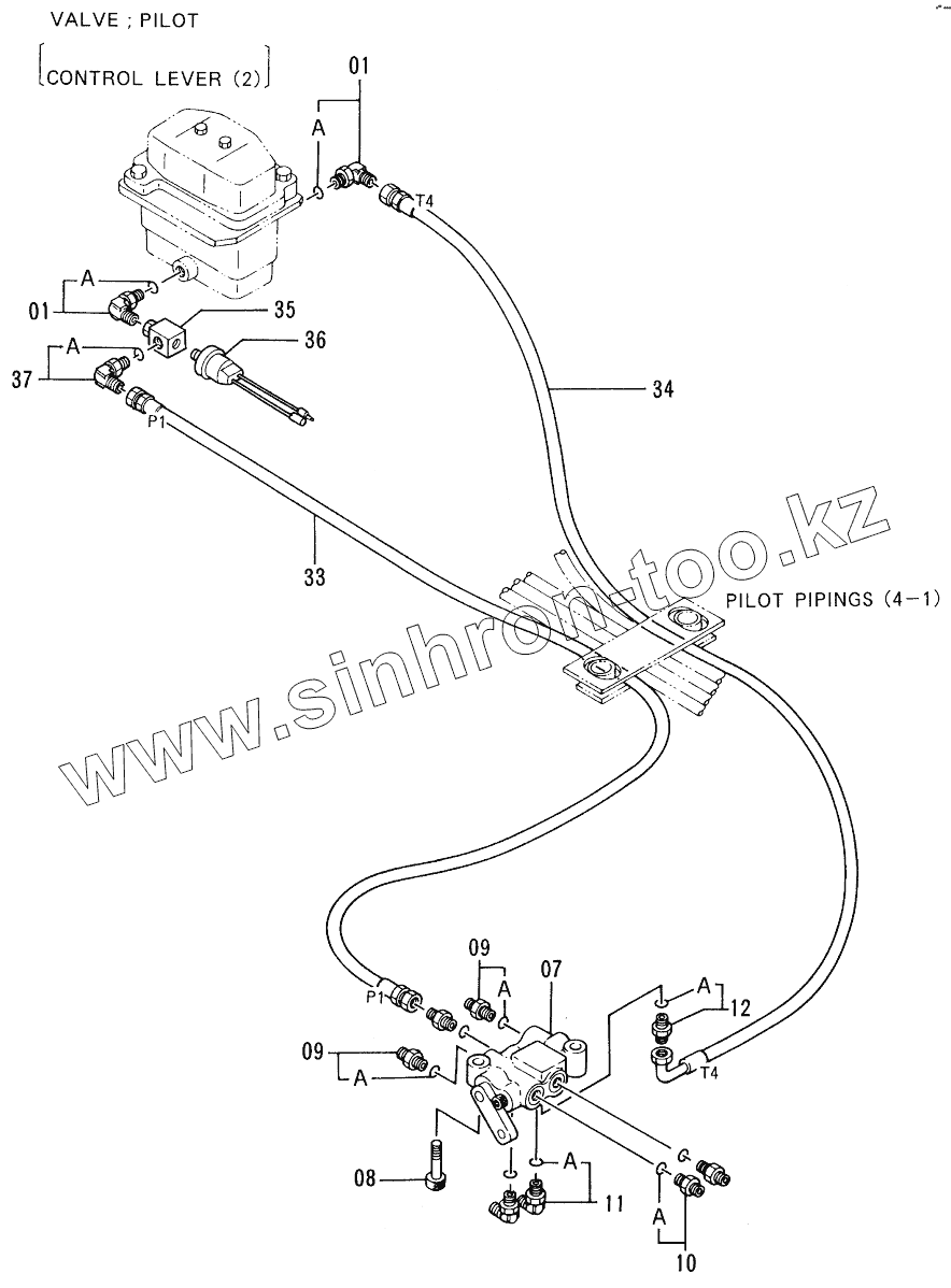 Каталог запасных частей к технике: Hitachi EX-220-2. PILOT PIPINGS (4-2) <N.EUROPE>