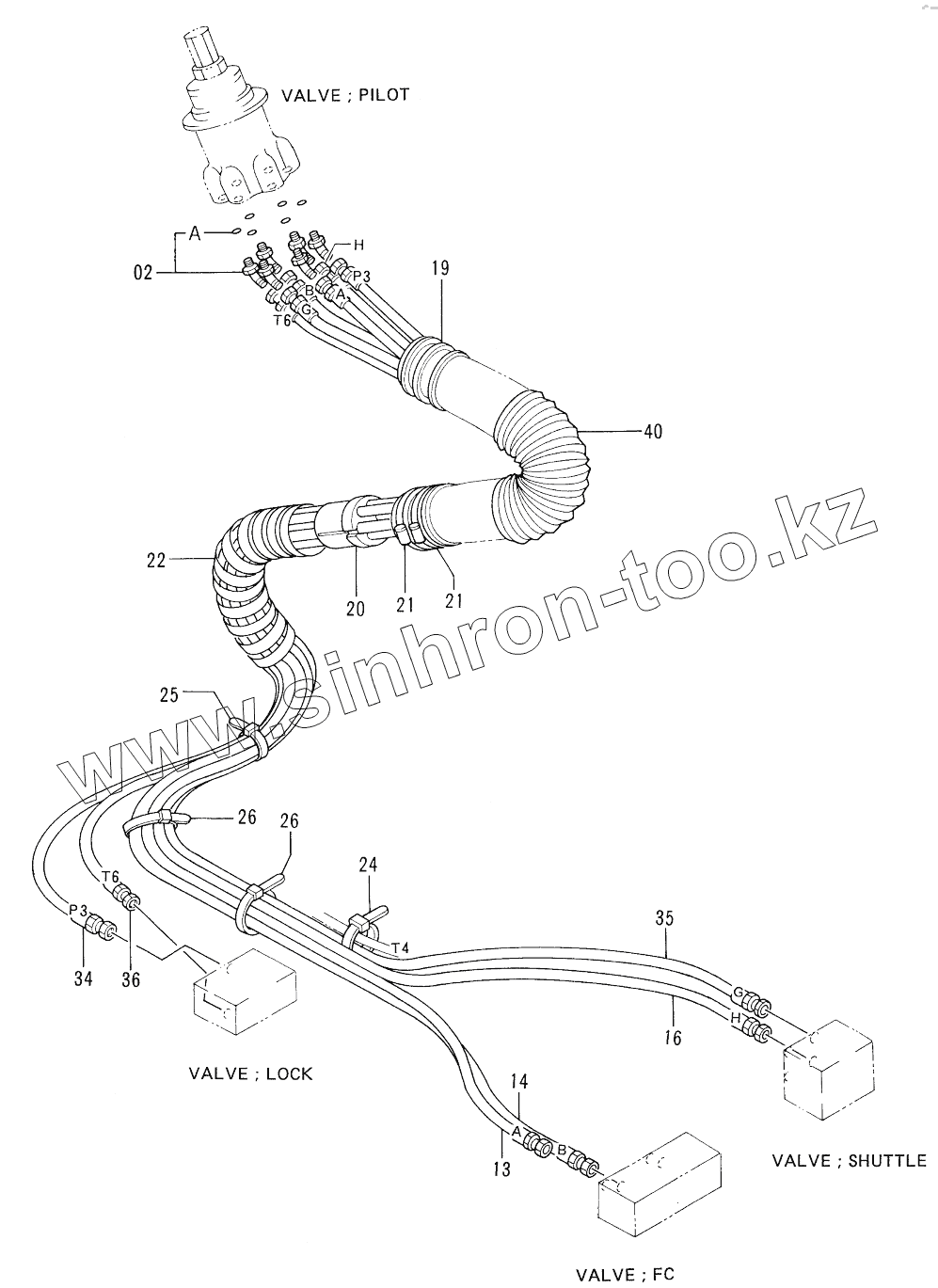 Каталог запасных частей к технике: Hitachi EX-220-2. PILOT PIPINGS (5-2)