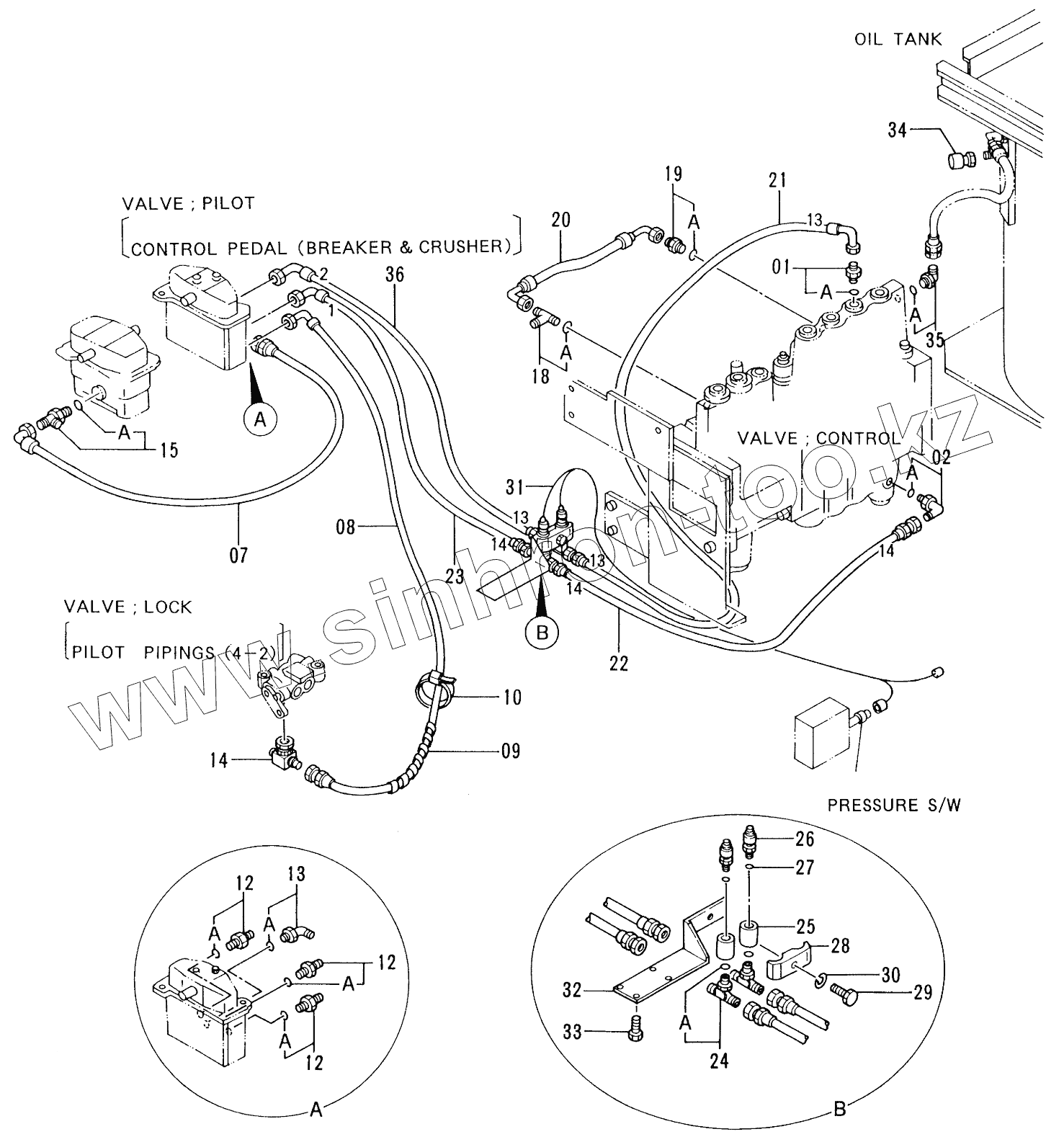Каталог запасных частей к технике: Hitachi EX-220-2. PILOT PIPINGS (BREAKER & CRUSHER)