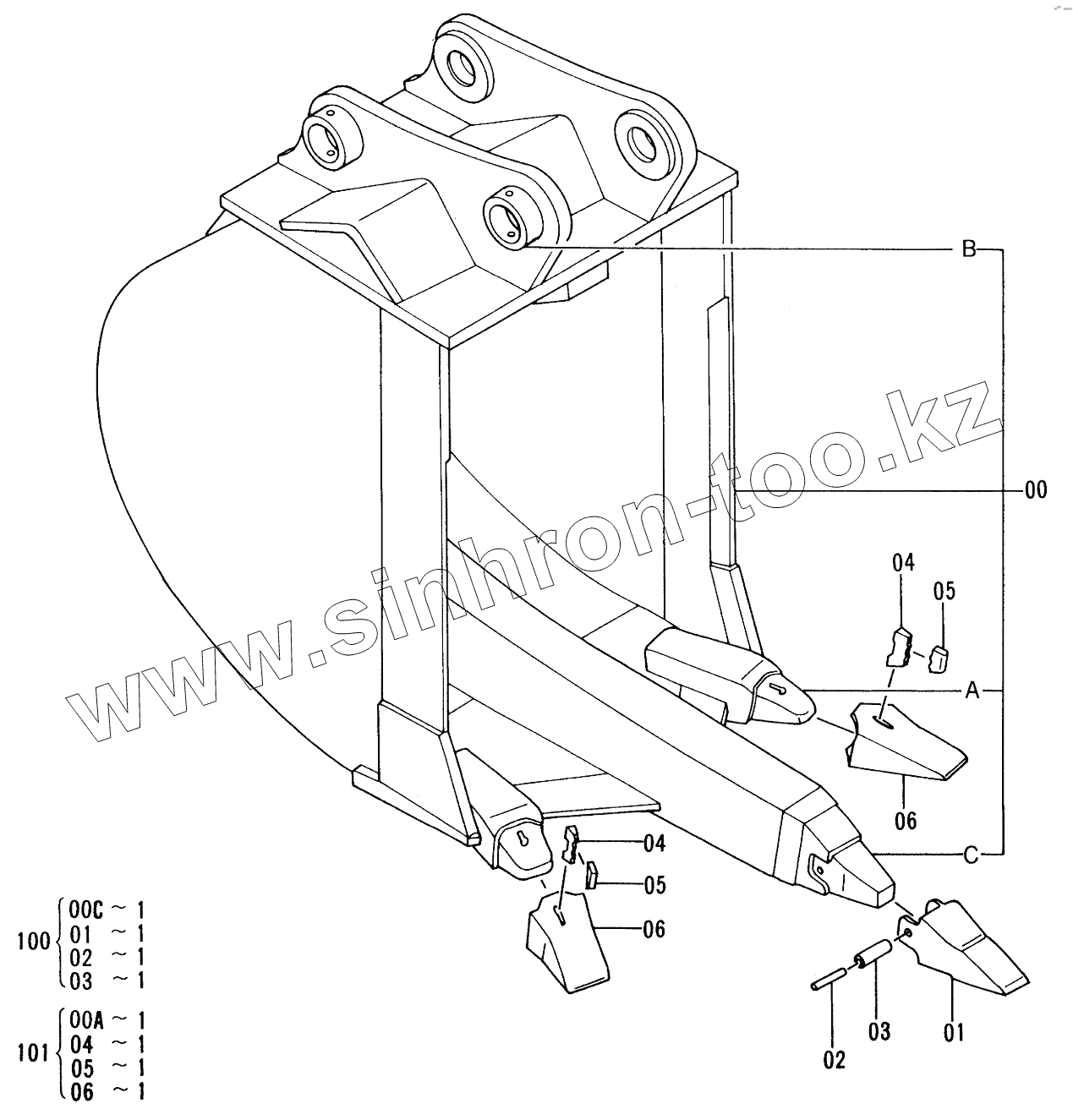 Каталог запасных частей к технике: Hitachi EX-220-2. RIPPER BUCKET 0.7