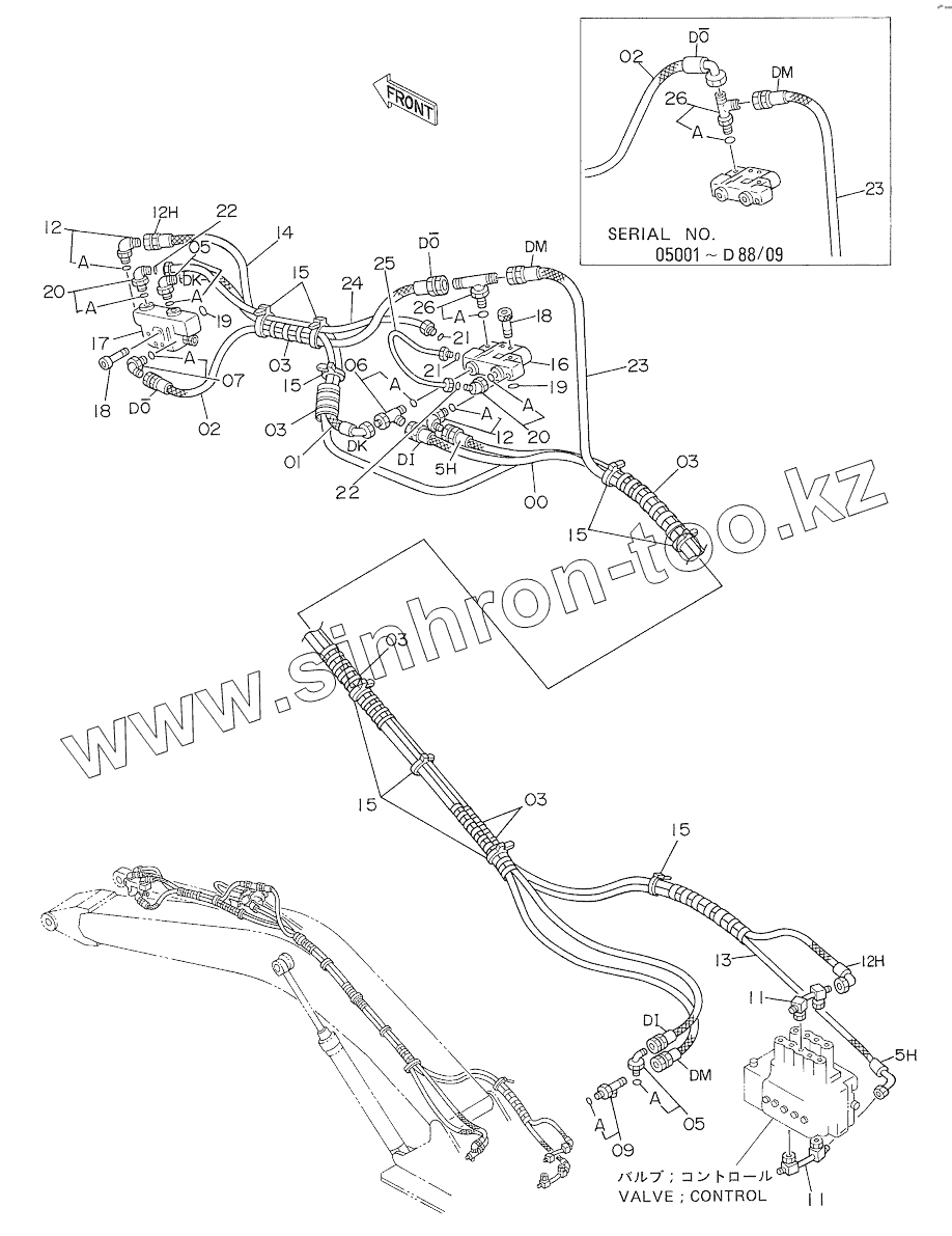 Каталог запасных частей к технике: Hitachi EX-270. HOSE RUPTURE VALVE PIPINGS (ARM)