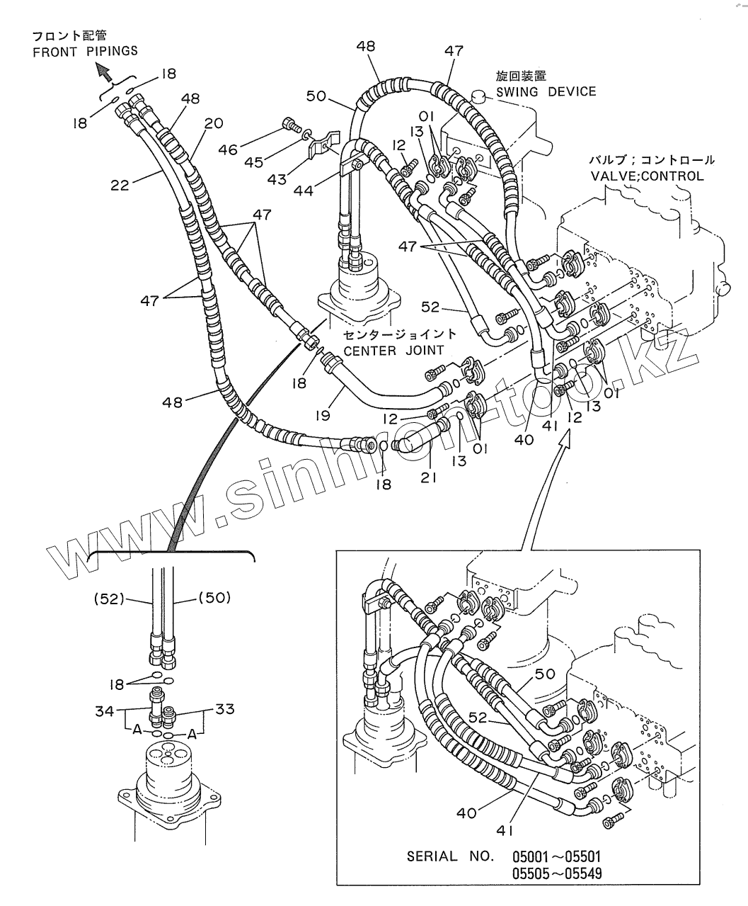 Каталог запасных частей к технике: Hitachi EX-270. MAIN PIPINGS (1)