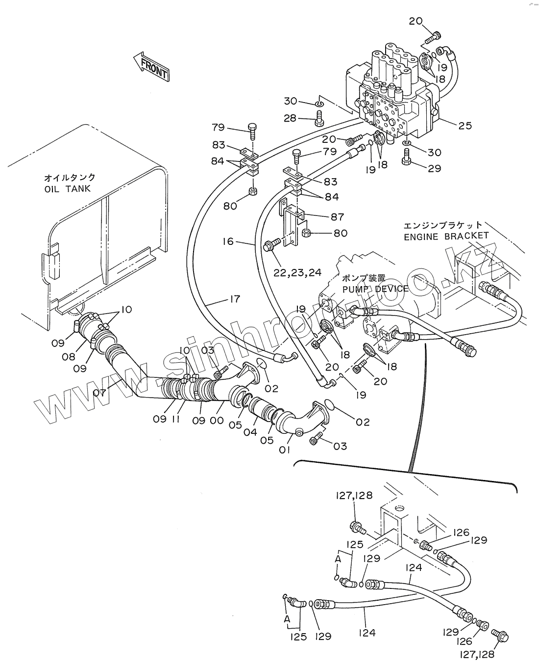 Каталог запасных частей к технике: Hitachi EX-270. OIL COOLER PIPINGS (1)