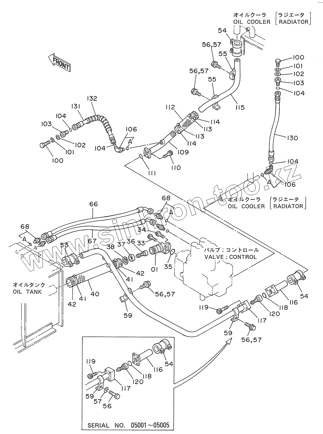 Каталог запасных частей к технике: Hitachi EX-270. OIL COOLER PIPINGS (2)