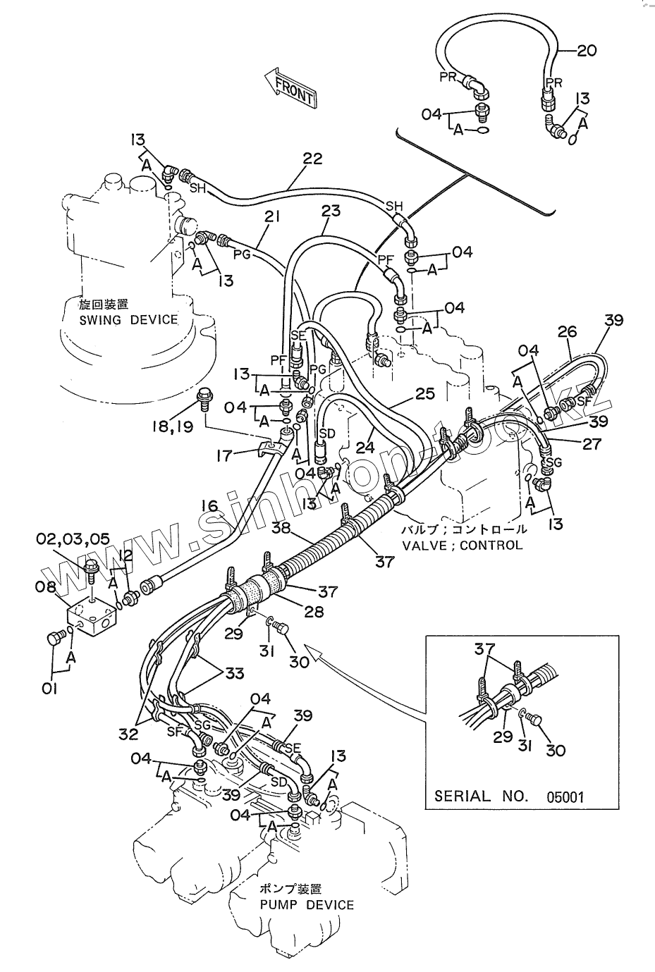 Каталог запасных частей к технике: Hitachi EX-270. PILOT PIPINGS (2) <DX>