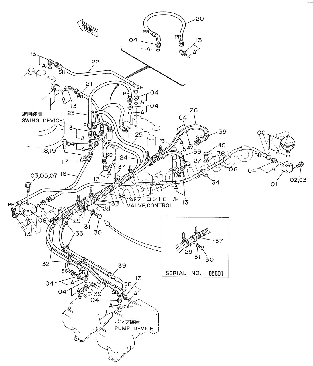 Каталог запасных частей к технике: Hitachi EX-270. PILOT PIPINGS (2) <SDX>