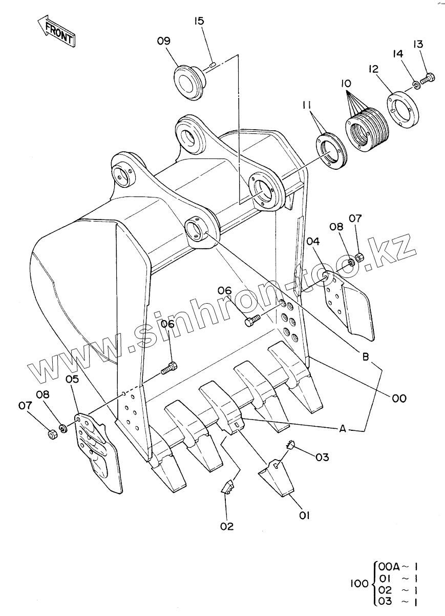 Каталог запасных частей к технике: Hitachi EX-300. BUCKET 1.0