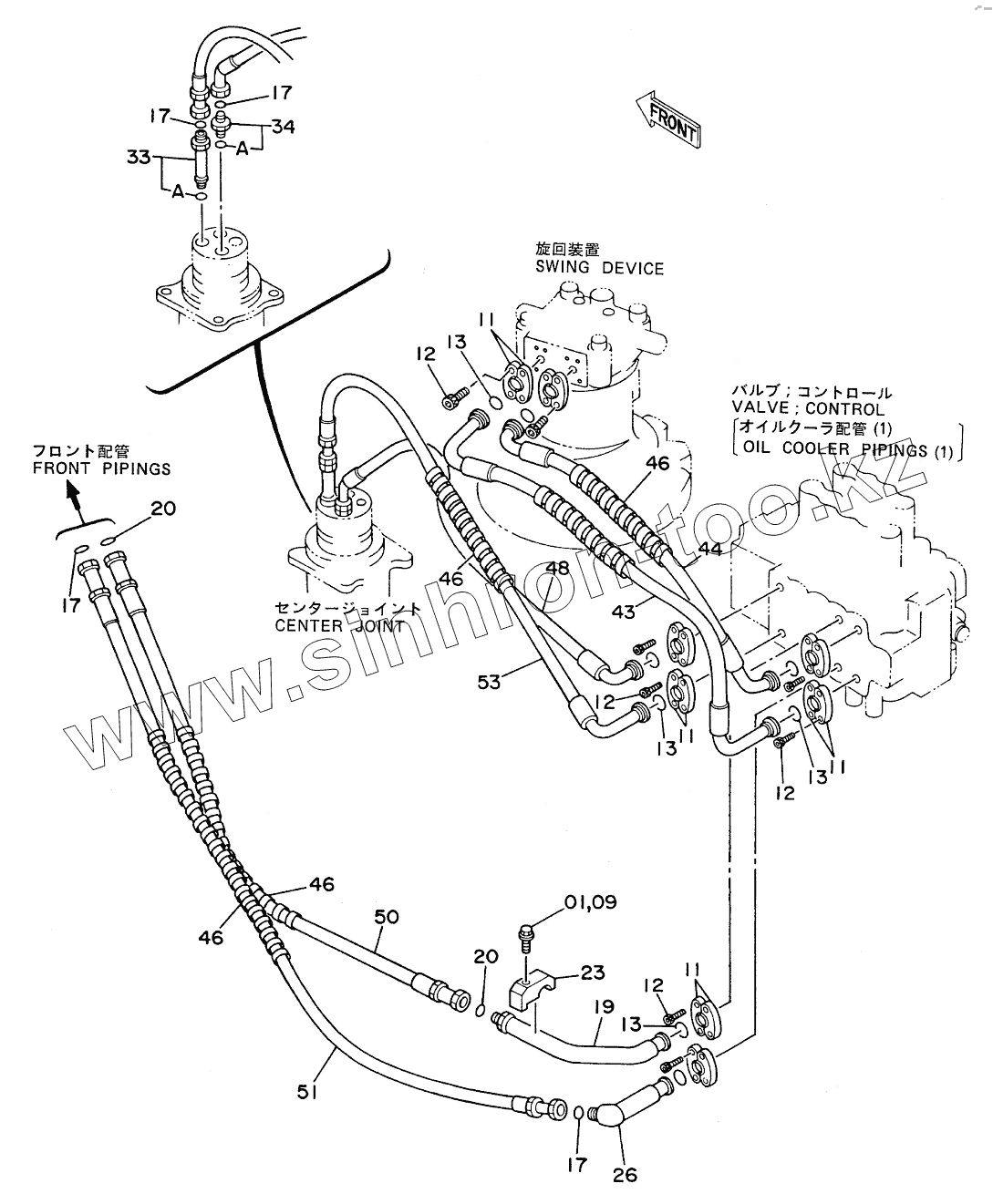 Каталог запасных частей к технике: Hitachi EX-300. MAIN PIPINGS (1)