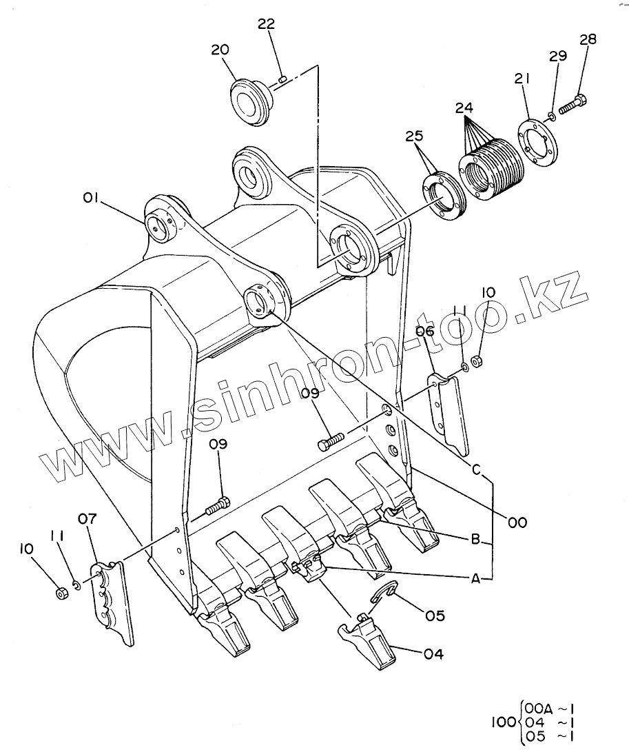 Каталог запасных частей к технике: Hitachi EX-300. ROCK BUCKET 1.2