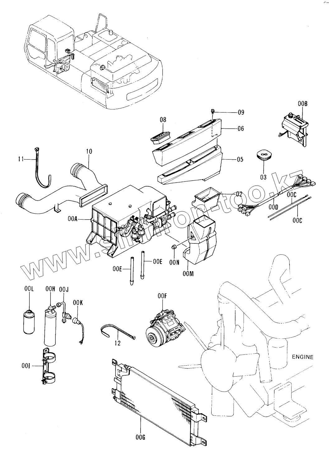Каталог запасных частей к технике: Hitachi EX-300-2. AIR CONDITIONER (1)