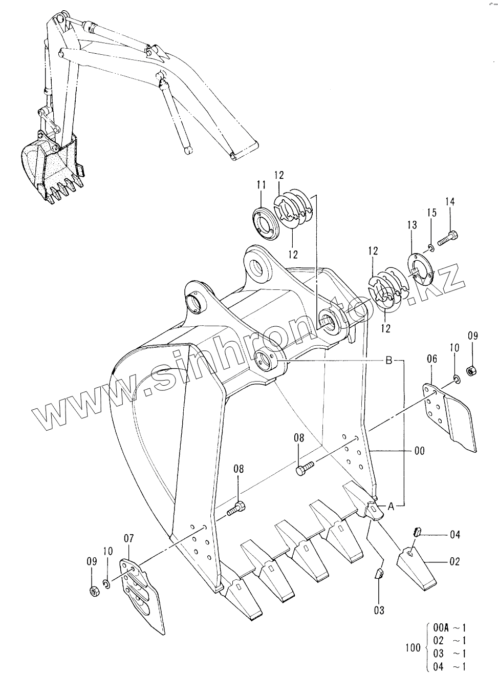 Каталог запасных частей к технике: Hitachi EX-300-2. BUCKET (1.2)