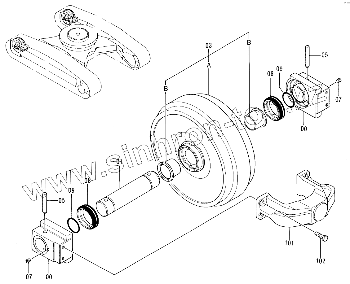 Каталог запасных частей к технике: Hitachi EX-300-2. FRONT IDLER