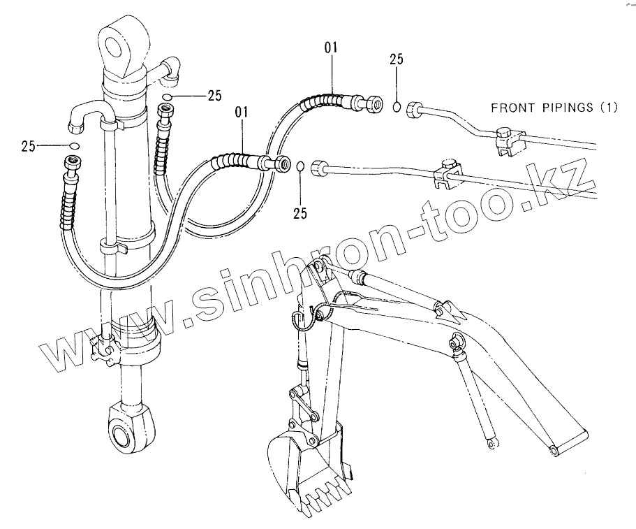 Каталог запасных частей к технике: Hitachi EX-300-2. FRONT PIPINGS (2)