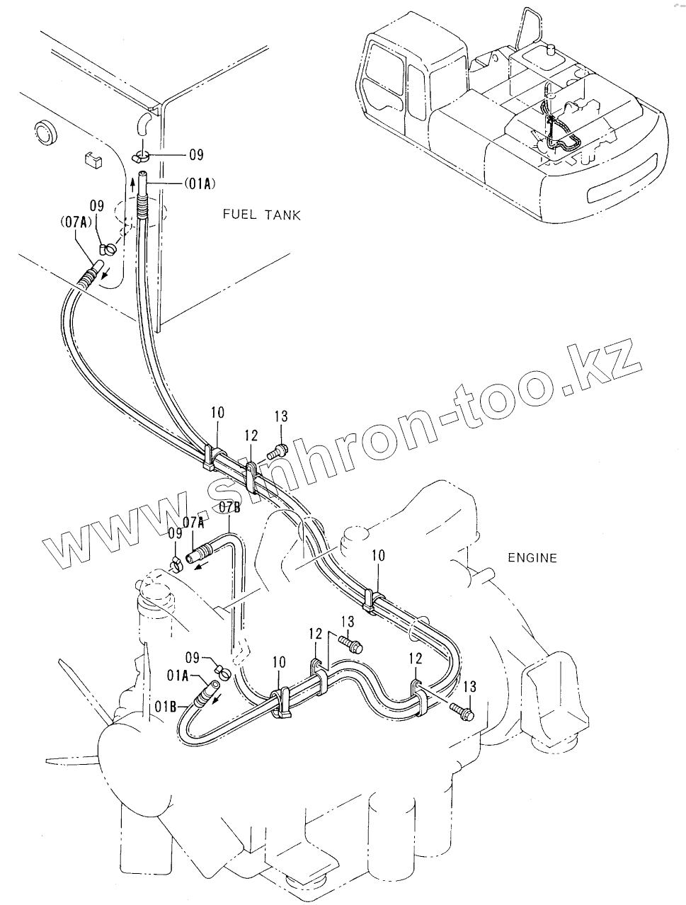 Каталог запасных частей к технике: Hitachi EX-300-2. FUEL PIPINGS