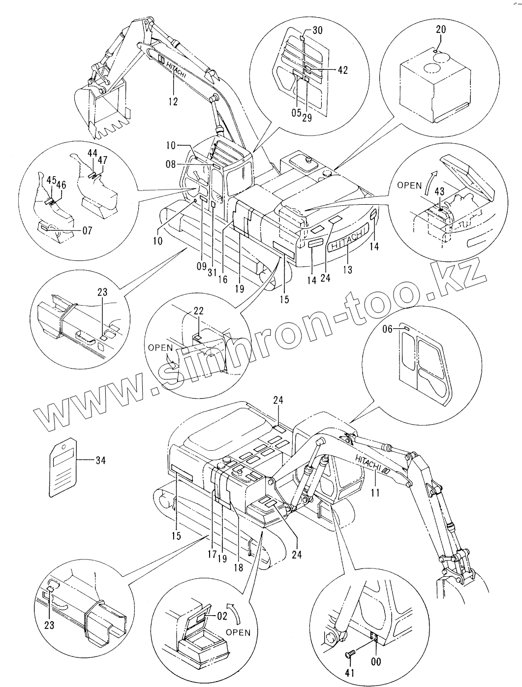 Каталог запасных частей к технике: Hitachi EX-300-2. NAME-PLATE (ENGLISH)(USA)