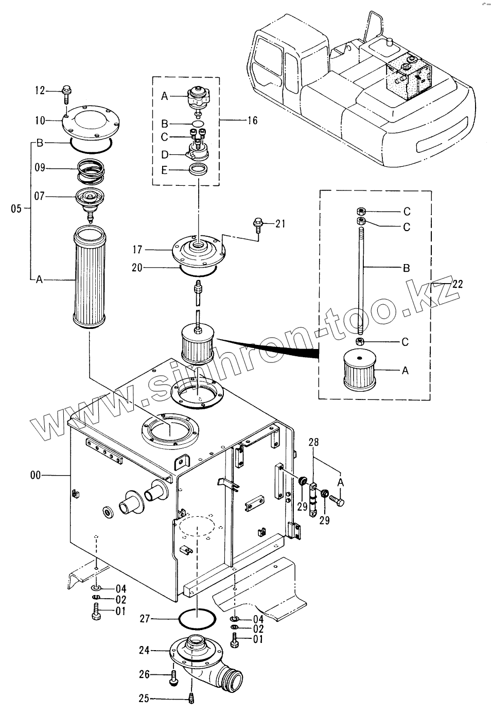 Каталог запасных частей к технике: Hitachi EX-300-2. OIL TANK