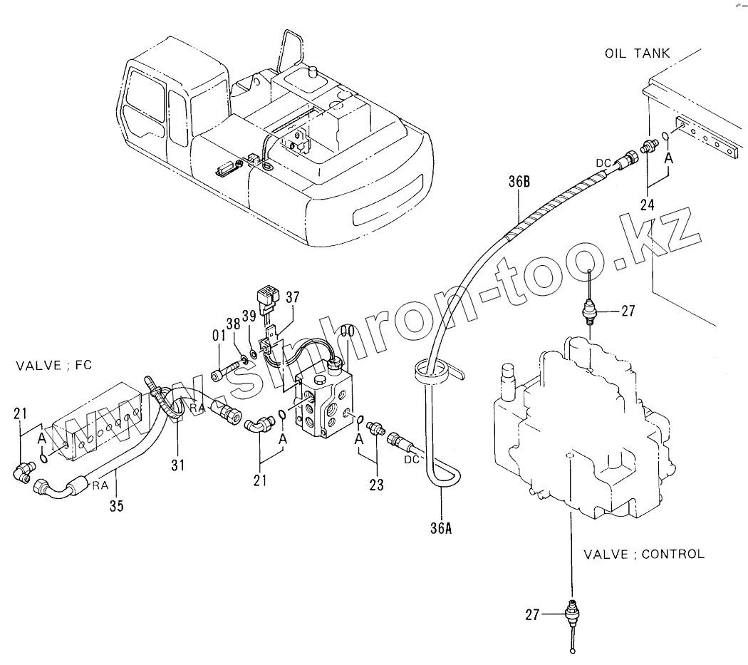 Каталог запасных частей к технике: Hitachi EX-300-2. PILOT PIPINGS (1-1)