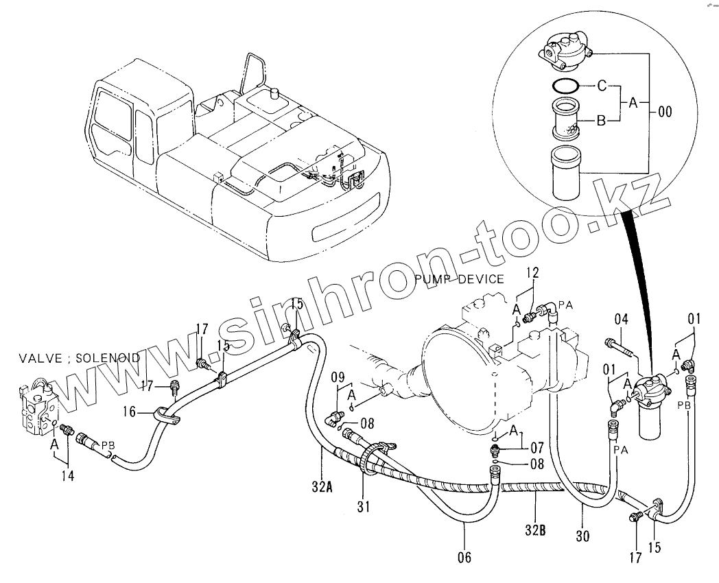 Каталог запасных частей к технике: Hitachi EX-300-2. PILOT PIPINGS (1-2)