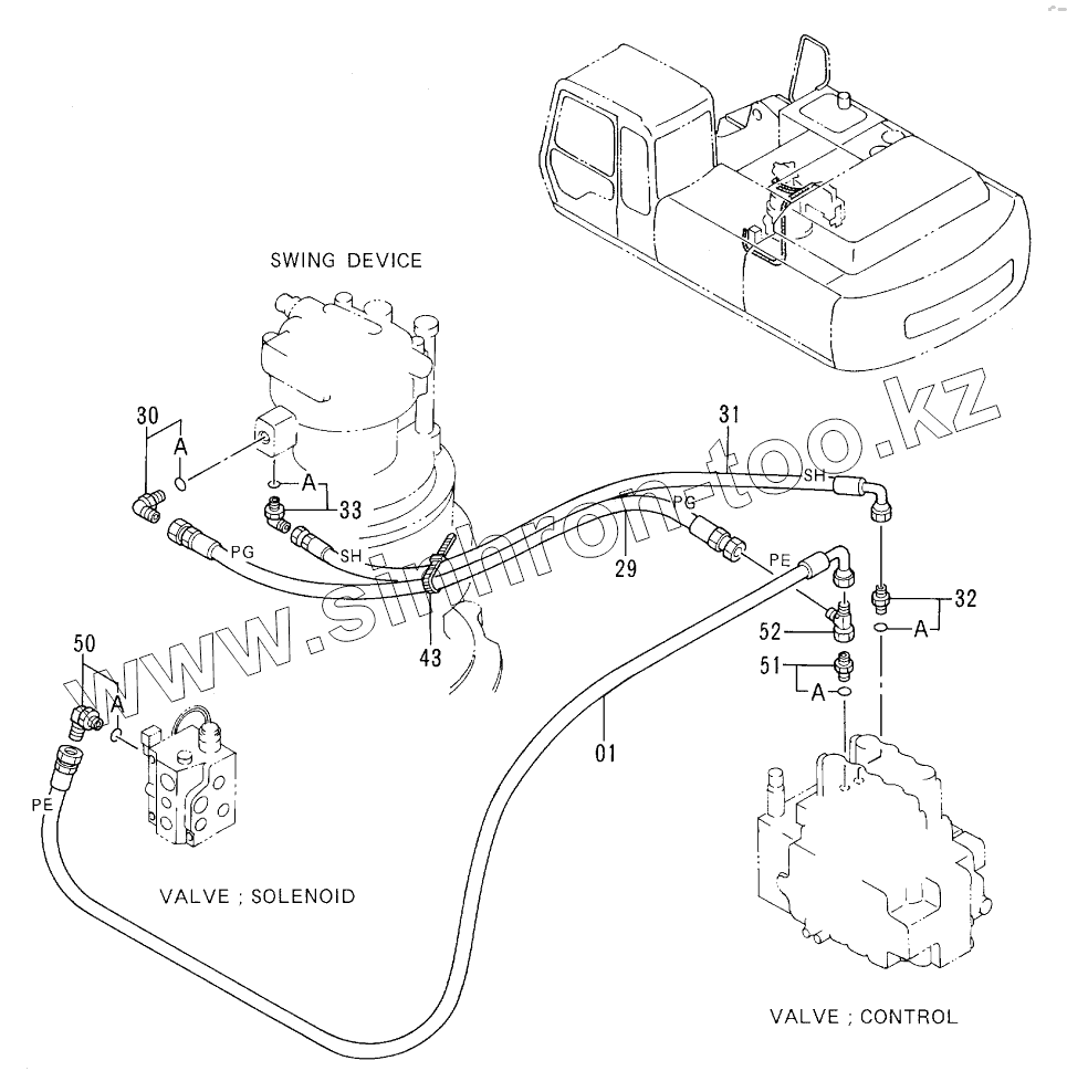 Каталог запасных частей к технике: Hitachi EX-300-2. PILOT PIPINGS (2-3)