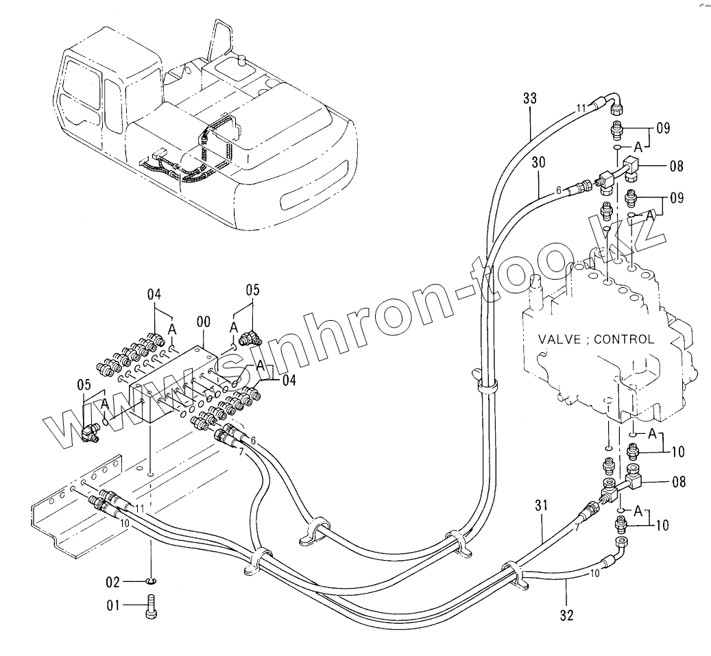 Каталог запасных частей к технике: Hitachi EX-300-2. PILOT PIPINGS (3-1)