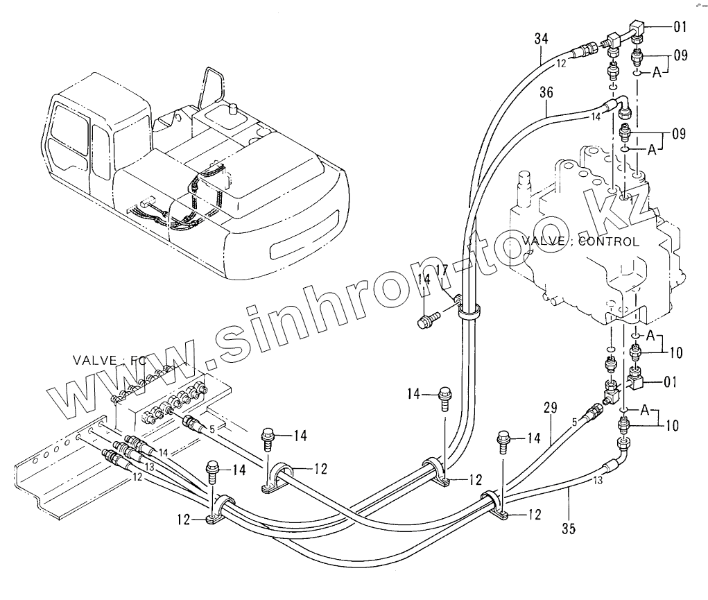 Каталог запасных частей к технике: Hitachi EX-300-2. PILOT PIPINGS (3-2)