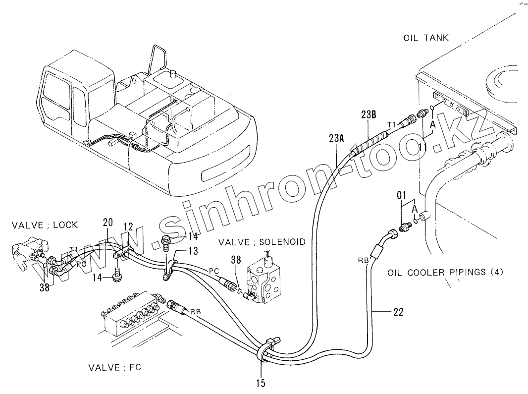 Каталог запасных частей к технике: Hitachi EX-300-2. PILOT PIPINGS (3-4)