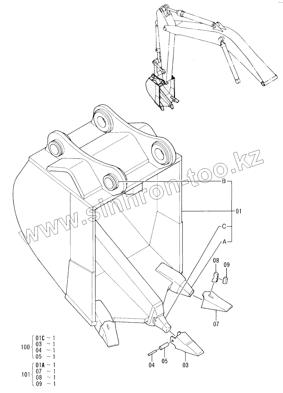 Каталог запасных частей к технике: Hitachi EX-300-2. RIPPER BUCKET (0.8)