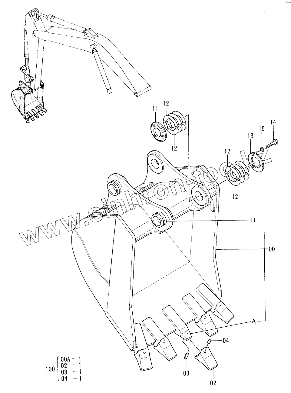 Каталог запасных частей к технике: Hitachi EX-300-2. ROCK BUCKET (1.0)
