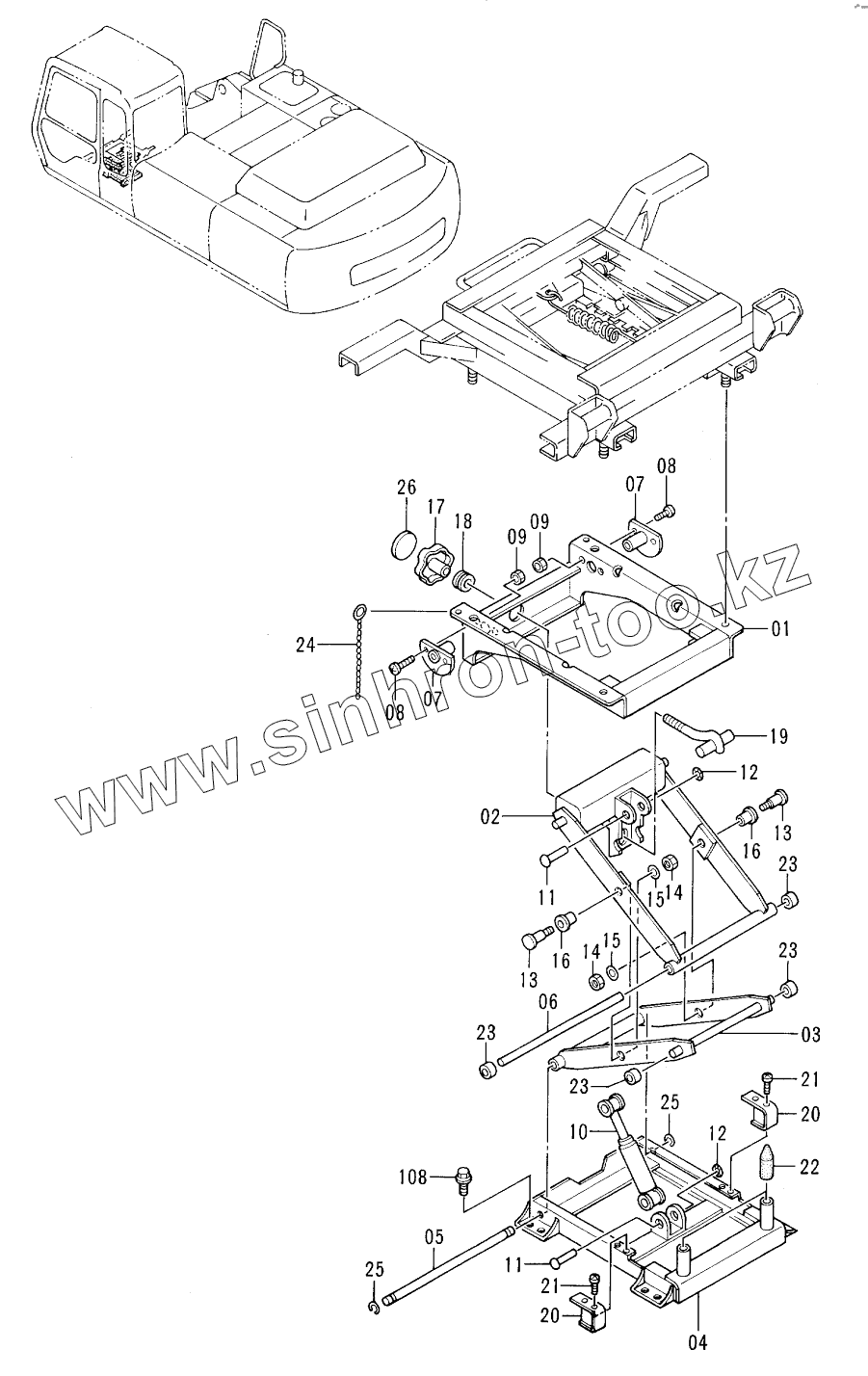 Каталог запасных частей к технике: Hitachi EX-300-2. SEAT SUSPENSION (STD)