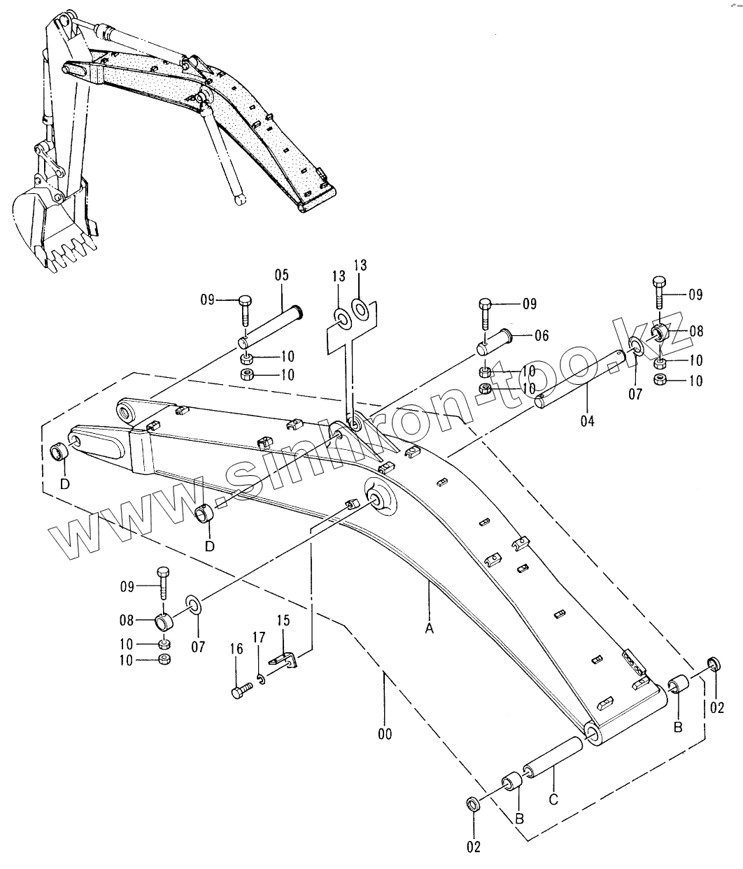Каталог запасных частей к технике: Hitachi EX-300-2. STD. BOOM <300-2,LC-2>