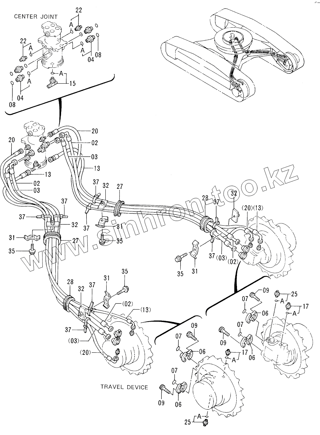 Каталог запасных частей к технике: Hitachi EX-300-2. TRAVEL PIPINGS <STD. TRACK>