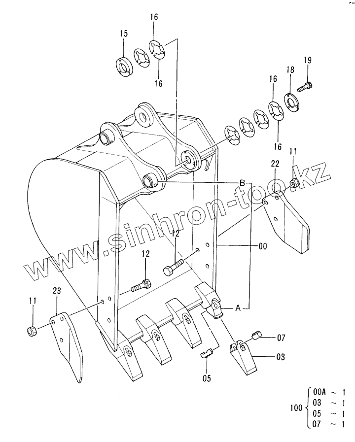 Каталог запасных частей к технике: Hitachi EX-60. BUCKET 0.25