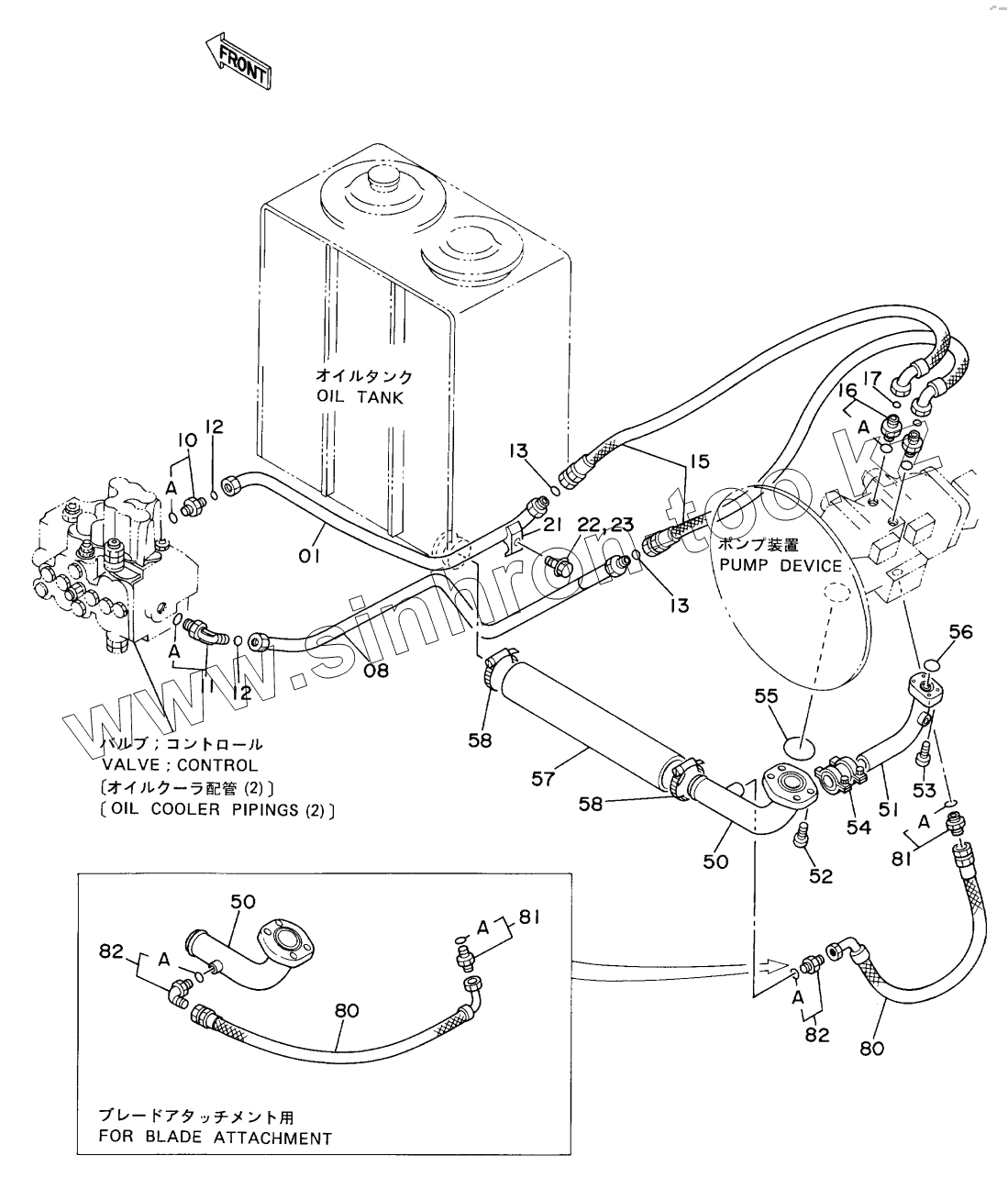 Каталог запасных частей к технике: Hitachi EX-60. OIL COOLER PIPINGS (1)