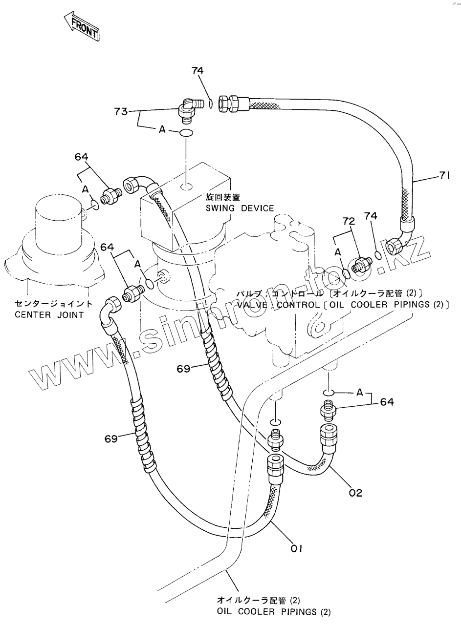 Каталог запасных частей к технике: Hitachi EX-60. OIL COOLER PIPINGS (3)