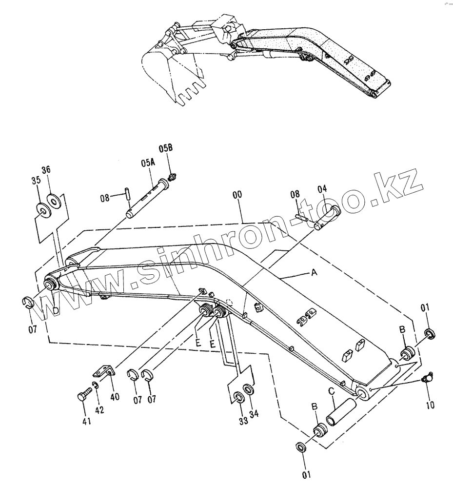 Каталог запасных частей к технике: Hitachi EX-60-2. Boom (SHORT REACH)