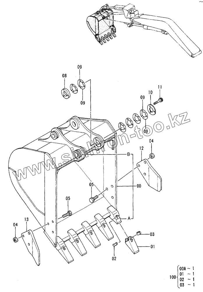 Каталог запасных частей к технике: Hitachi EX-60-2. Bucket 0.3 (Short Reach)
