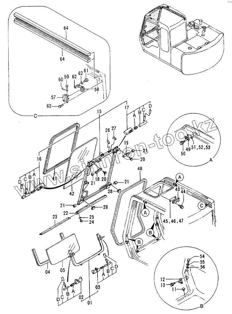 Каталог запасных частей к технике: Hitachi EX-60-2. Cab (2) (N.EUROPE)