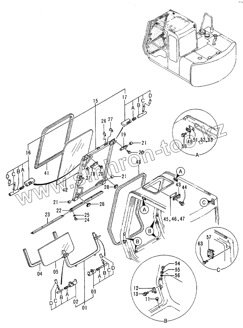 Каталог запасных частей к технике: Hitachi EX-60-2. Cab (2) (STD)