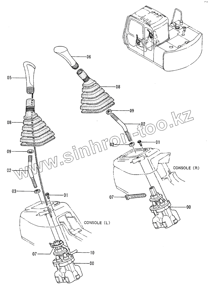 Каталог запасных частей к технике: Hitachi EX-60-2. Control Lever (1) (Vibrator)