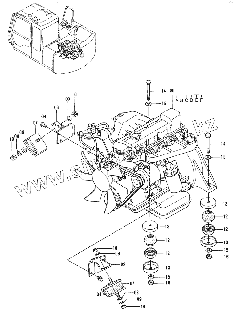 Каталог запасных частей к технике: Hitachi EX-60-2. Engine