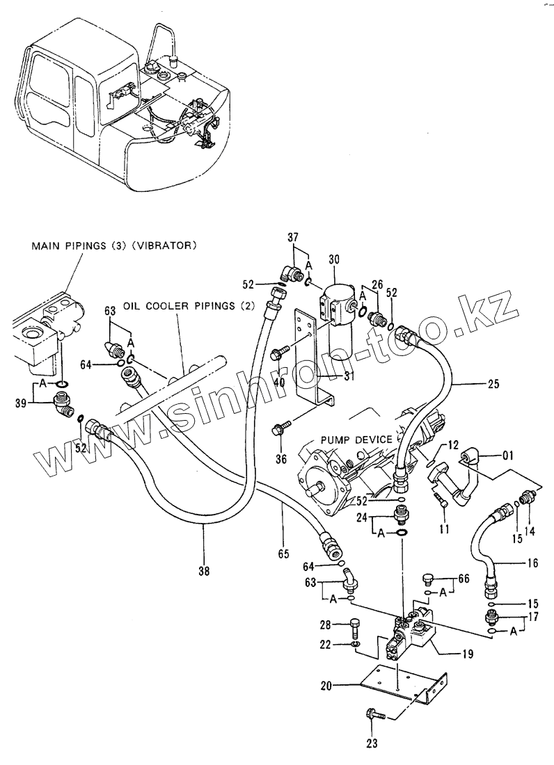Каталог запасных частей к технике: Hitachi EX-60-2. Main Pipings (2) (Vibrator)