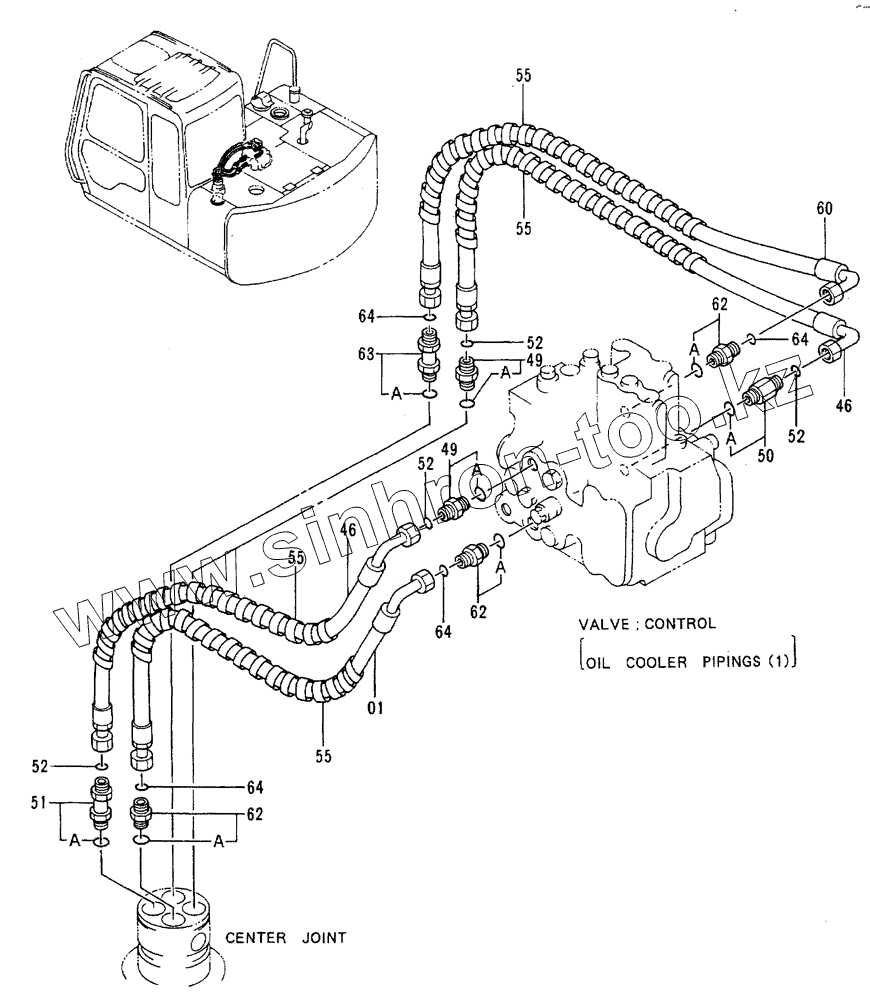 Каталог запасных частей к технике: Hitachi EX-60-2. Main Pipings (4)