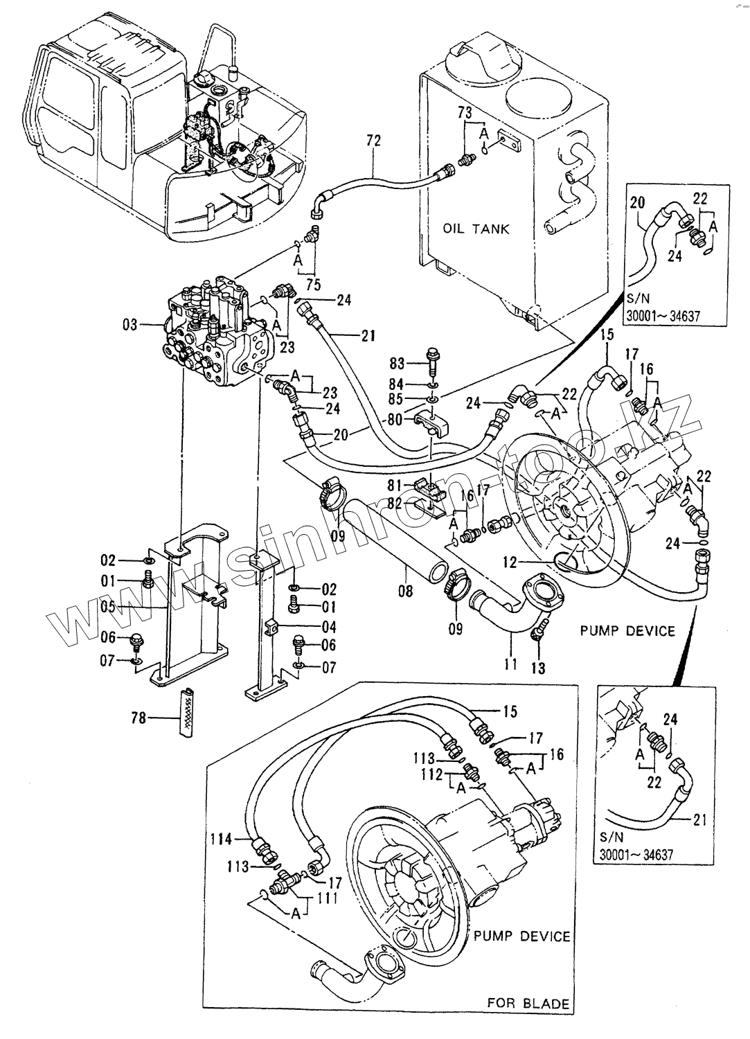 Каталог запасных частей к технике: Hitachi EX-60-2. Oil Cooler Pipings (1)