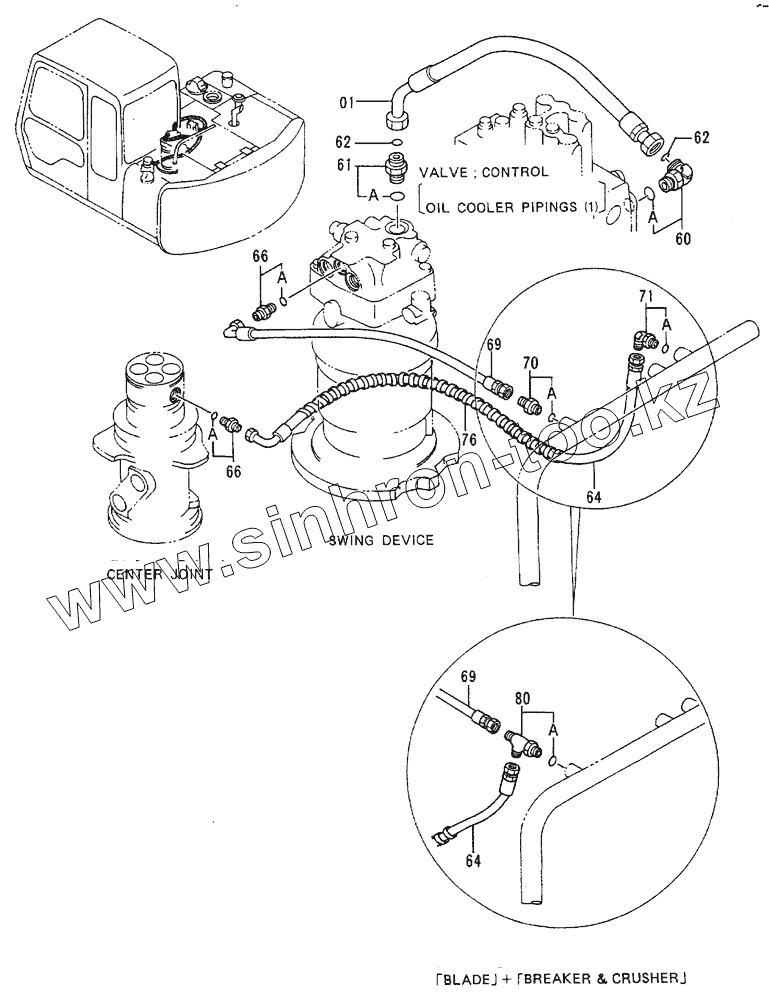 Каталог запасных частей к технике: Hitachi EX-60-2. Oil Cooler Pipings (3)