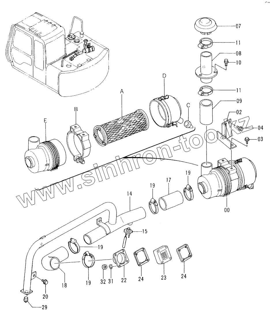 Каталог запасных частей к технике: Hitachi EX-60-3. AIR CLEANER