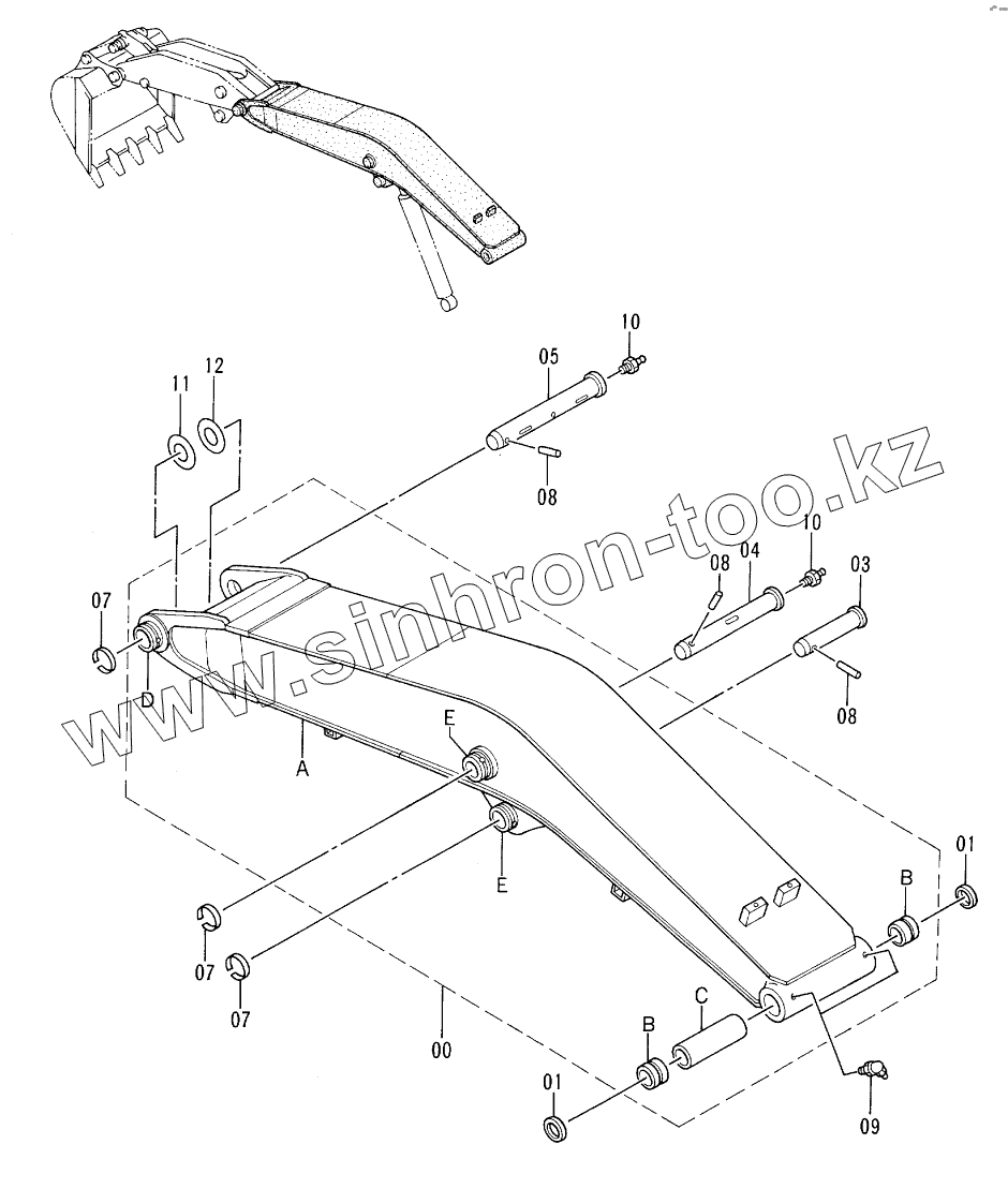 Каталог запасных частей к технике: Hitachi EX-60-3. BOOM <SUPER SHORT REACH>