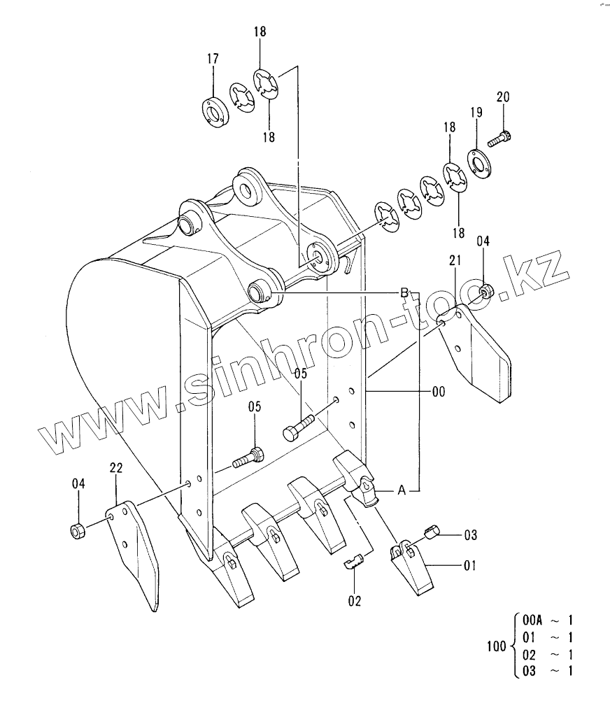 Каталог запасных частей к технике: Hitachi EX-60-3. BUCKET (0.25)