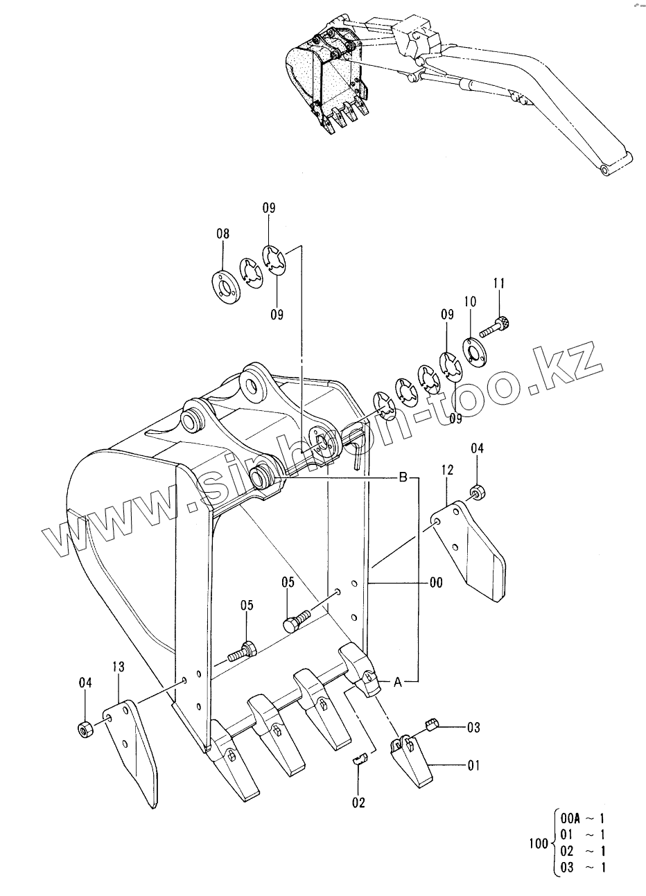 Каталог запасных частей к технике: Hitachi EX-60-3. BUCKET (0.25)<SHORT REACH>